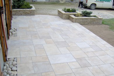 Réalisation d'un dallage et de jardinières en pierre naturelle